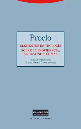 La presente edición ha sido concebida para remediar en alguna medida la escasa atención prestada en nuestra lengua al pensamiento de quien logró la versión definitiva de una filosofía de tanta relevancia histórica como el neoplatonismo. Para ello se ofrece una nueva traducción de los Elementos de teología, obra de gran impacto en la filosofía posterior por contener una versión originalísima de la metafísica antigua (en forma de definiciones y deducciones a imitación de los Elementos de Euclides, procedimiento expositivo que más tarde adoptaría Spinoza en su Ética).