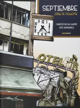 Septiembre. Zona de desastre cuenta los días posteriores a los terremotos de la Ciudad de México, el 19 y 20 de septiembre de 1985. Basado en un testimonio de las brigadas de rescatistas que se formaron espontáneamente en esos días urgentes, Fabrizio Mejía Madrid cuenta lo ocurrido con personas, edificios, amistades y amores entre ruinas, humo y rescates casi milagrosos. La pregunta que su historia hilvana es: ¿Podemos rescatar lo que se ha ido para siempre? La memoria, donde lo mismo aparecen Carlos Monsiváis que Rockdrigo González y Plácido Domingo, parece responder de alguna forma como una despedida a la Ciudad de México antes y después de su caída. José Hernández, monero reconocido por su trabajo de caricatura en La Jornada, en la revista Proceso y en El Chamuco, le da vida a ese momento crucial para millones de personas en la historia reciente del país. La resolución gráfica de Hernández nos deja ver a un dibujante realista, preciso, que echa mano de la tradición de la novela gráfica al mismo tiempo que la combina con el montaje del cine. Al conjuntar la historia de Fabrizio con el trabajo de Hernández, Septiembre. Zona de desastre constituye un referente para las nuevas generaciones de ese momento en la historia de México, en el que casi todo cambió para siempre.